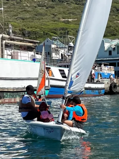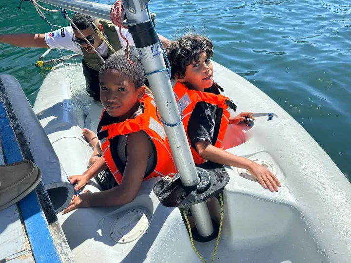 The children had the chance to sail in different boats. Some sailed in bigger boats, and others got to sail the optimist boats. A few children were scared at first and did not want to go out of the motor boat, but with a little encouragement, to give everyone a chance they went to experience Pico boats—and they were so happy they did!
