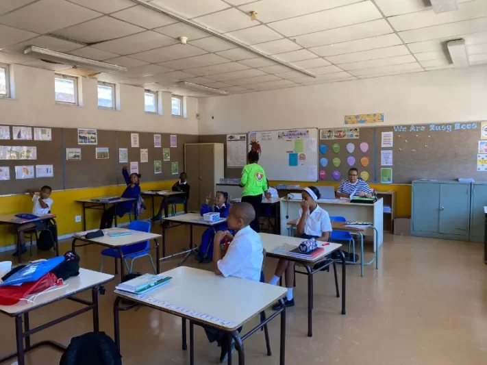 With the Grade R–3 learners, we shared our beautiful story called “The Sea Monster.”” Before opening the book, we asked the learners what they thought the sea monster might be. Many of them quickly guessed that it was plastic in the ocean, which was amazing to hear. When the story began, the room went quiet. The learners listened closely, completely drawn into the story and its message about protecting the ocean and caring for marine life.