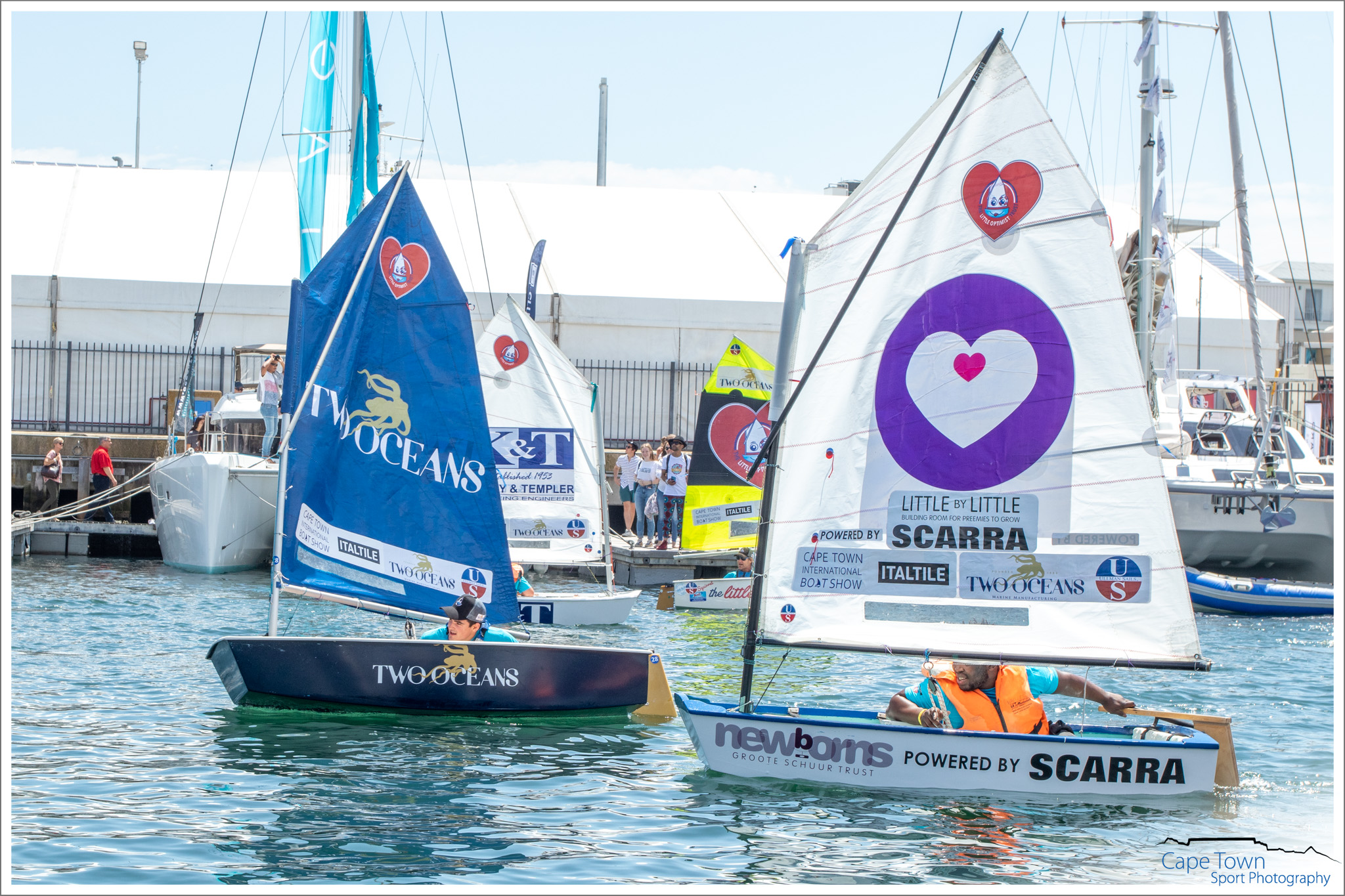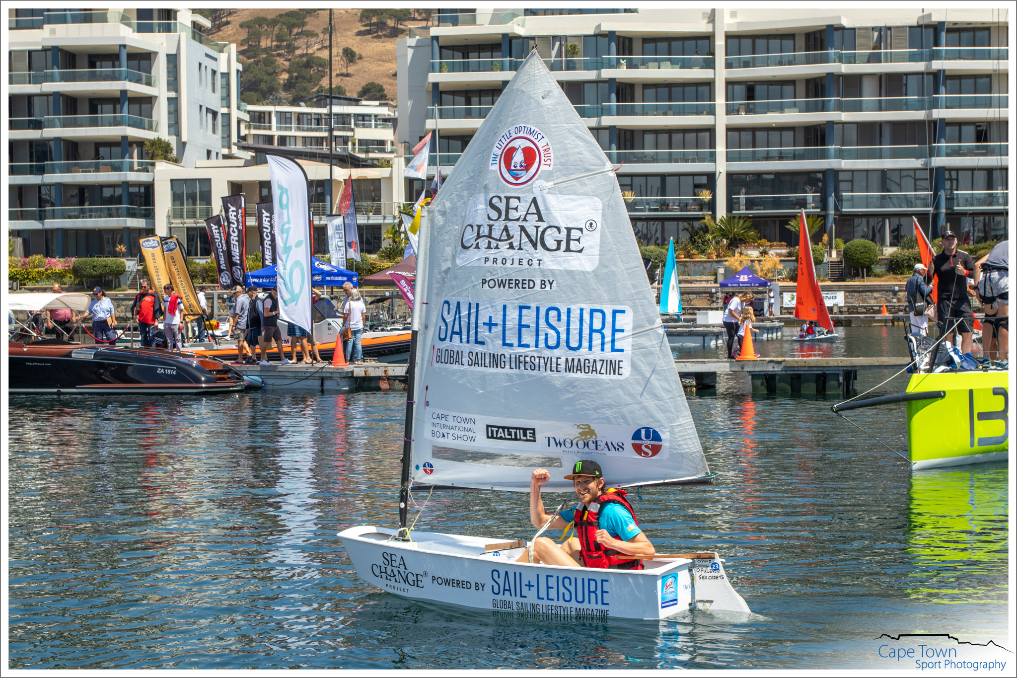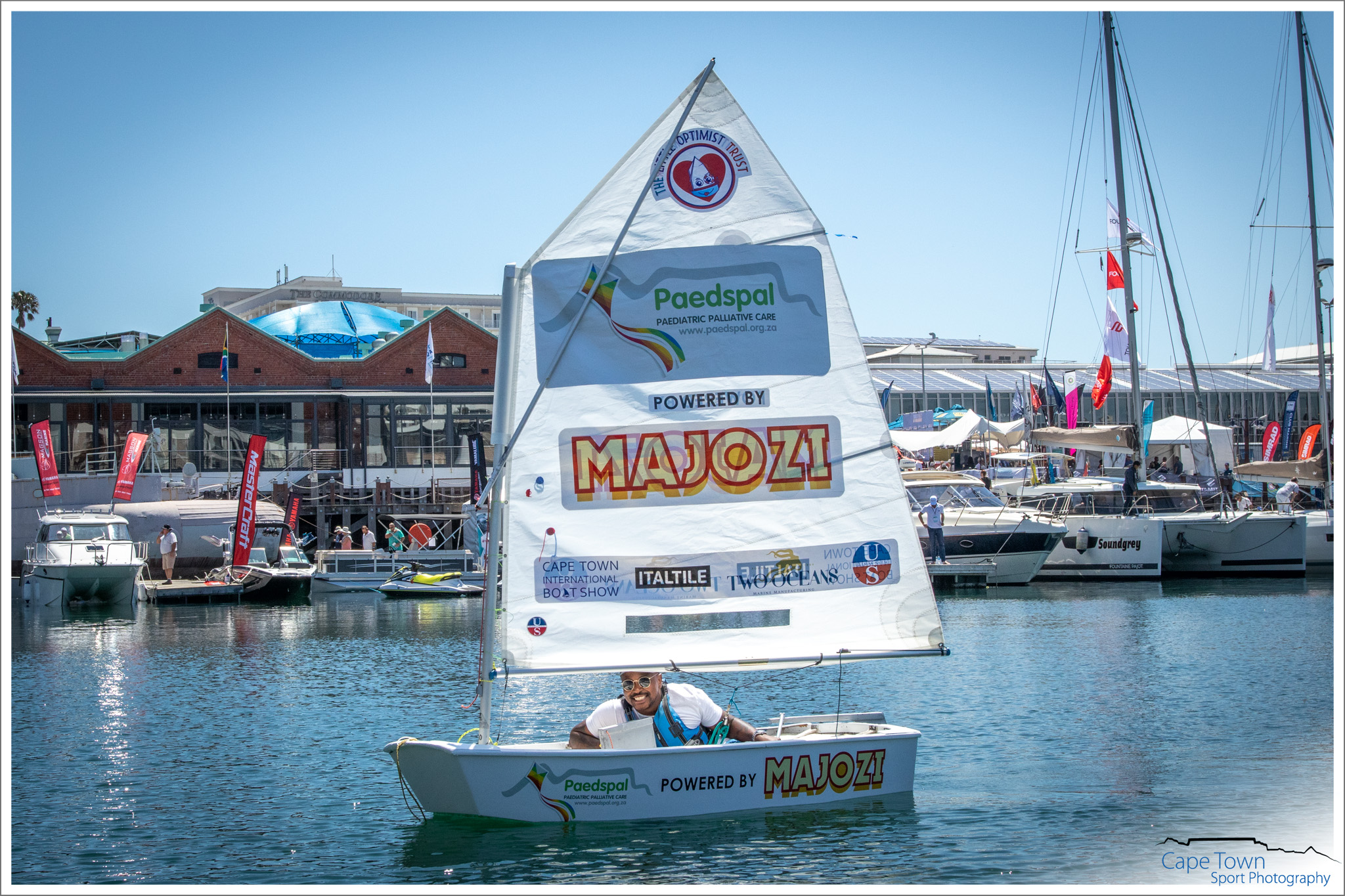 The Great Optimist Race 2019 was held during the Cape Town International Boat Show, on October 19th at 12 o’clock. 40 Optimist Children’s dinghies were raced by adults ( Celebrities, Medical Survivors & Captains of Industry) not only for glory, but also to raise money and awareness for the charity of their choice . The Race is a FANTASTIC and UNIQUE fundraising event , spreading Optimism and Hope across so many sectors. All the funds raised by each boat will be split between The Little Optimist Trust and the charity supported by that boat.