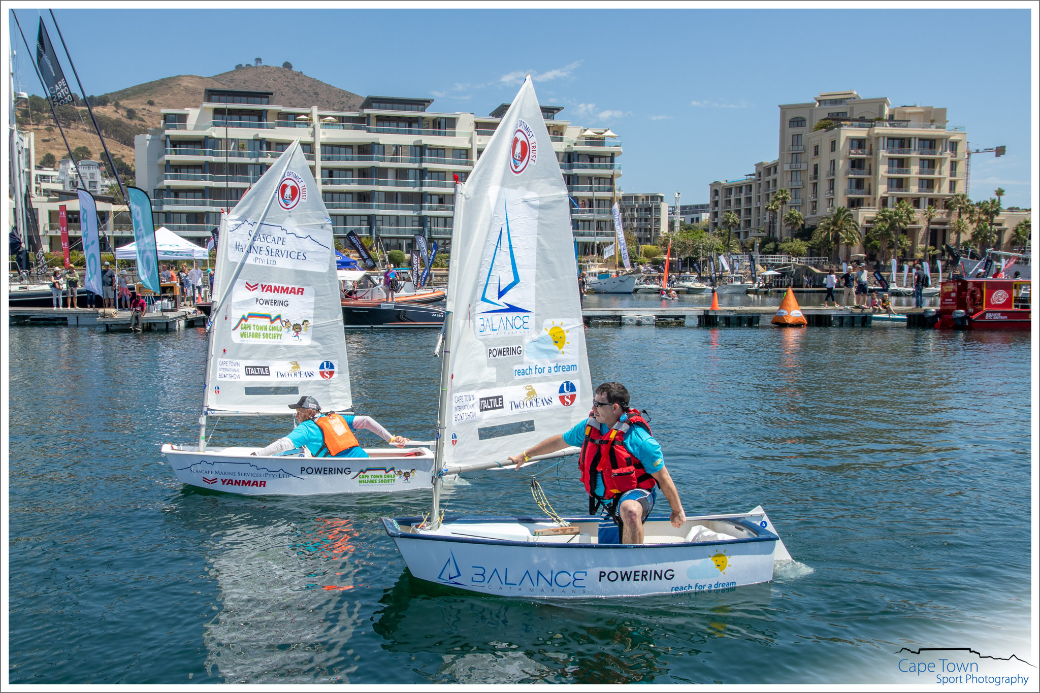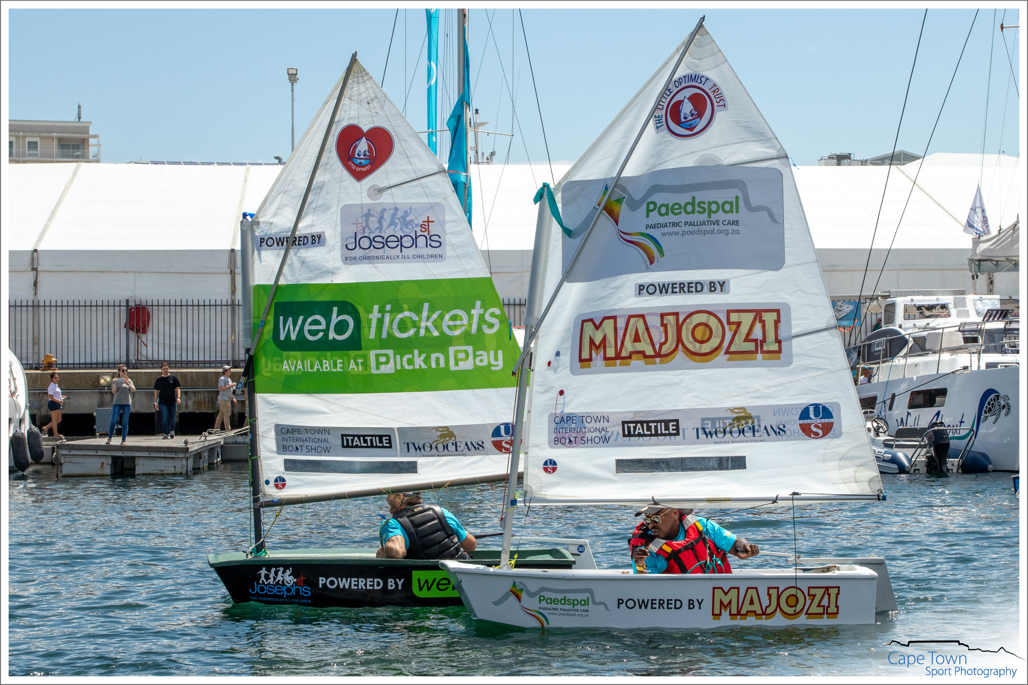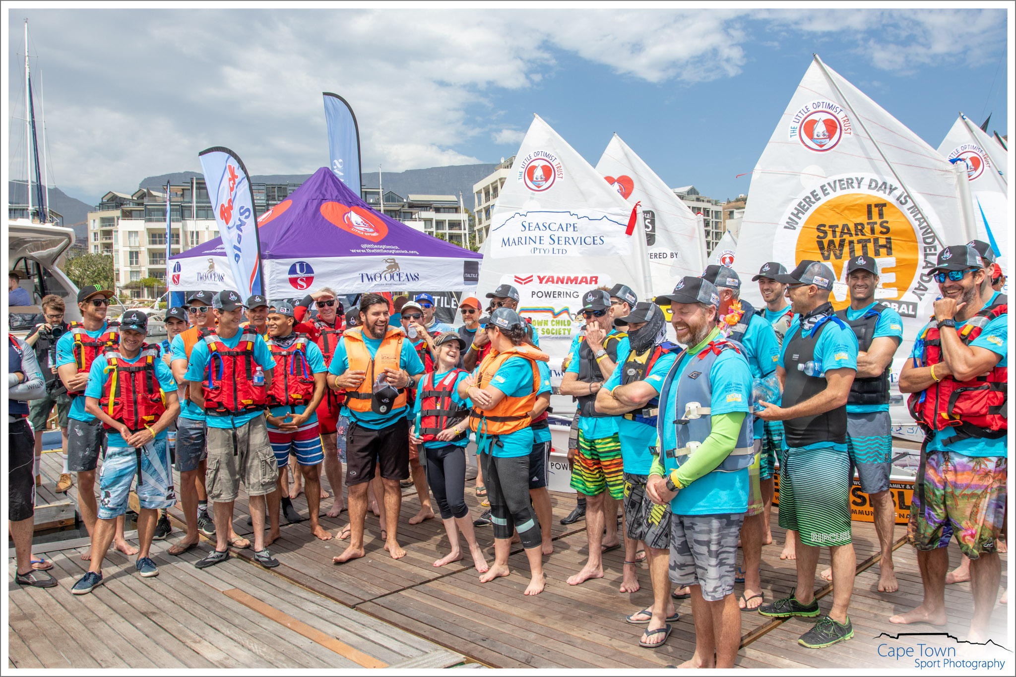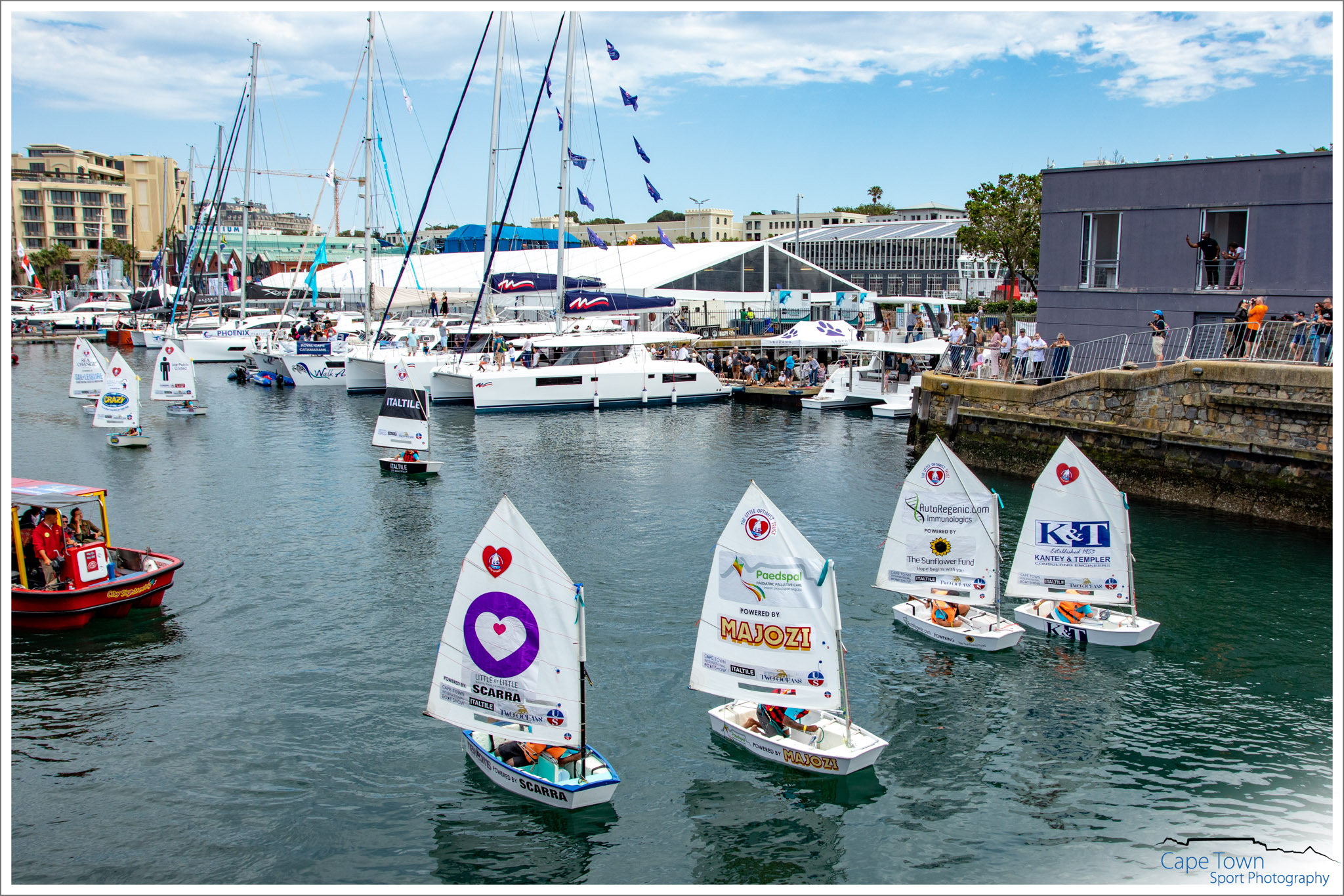 The Great Optimist Race 2019 was held during the Cape Town International Boat Show, on October 19th at 12 o’clock. 40 Optimist Children’s dinghies were raced by adults ( Celebrities, Medical Survivors & Captains of Industry) not only for glory, but also to raise money and awareness for the charity of their choice . The Race is a FANTASTIC and UNIQUE fundraising event , spreading Optimism and Hope across so many sectors. All the funds raised by each boat will be split between The Little Optimist Trust and the charity supported by that boat.