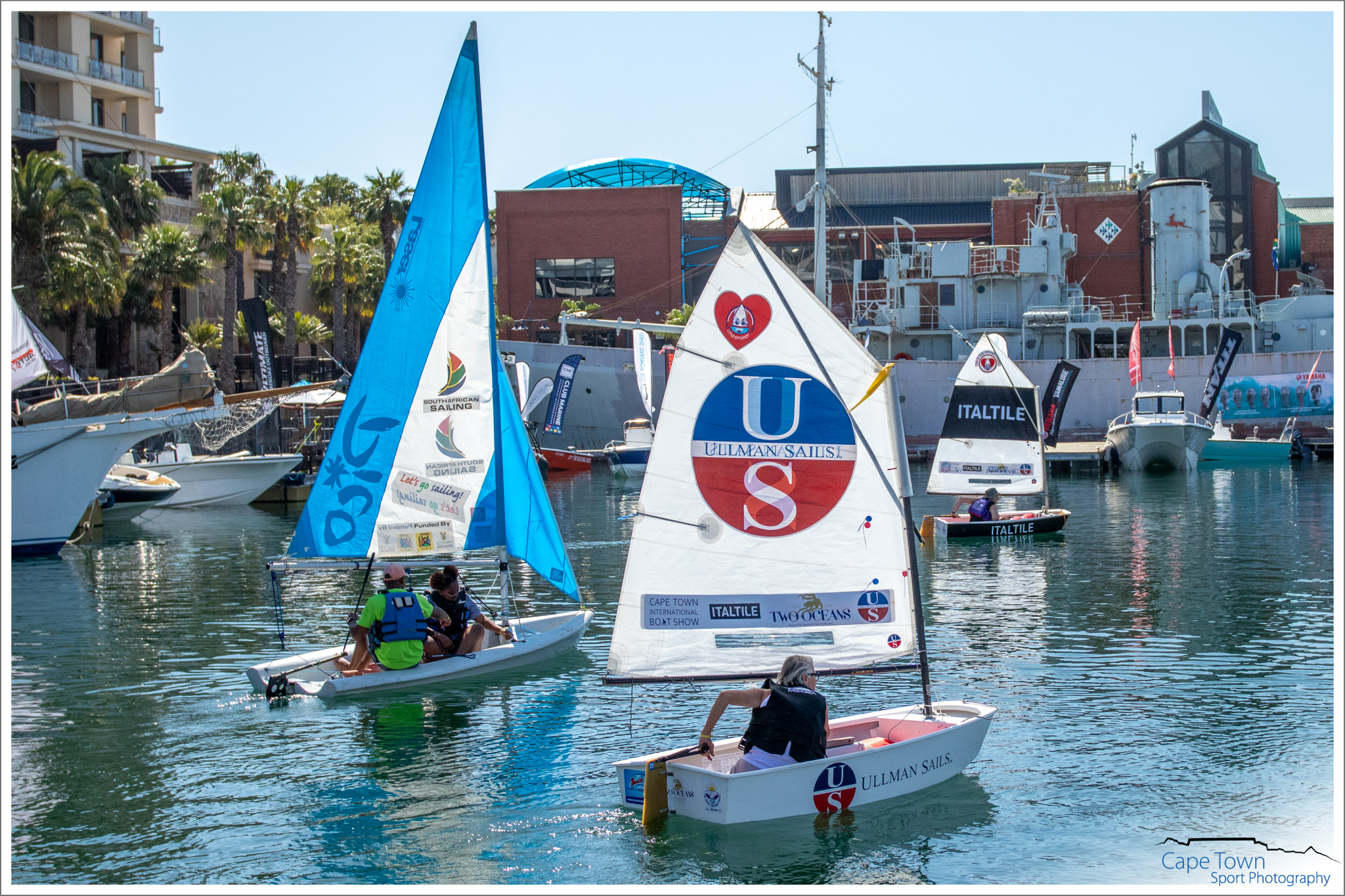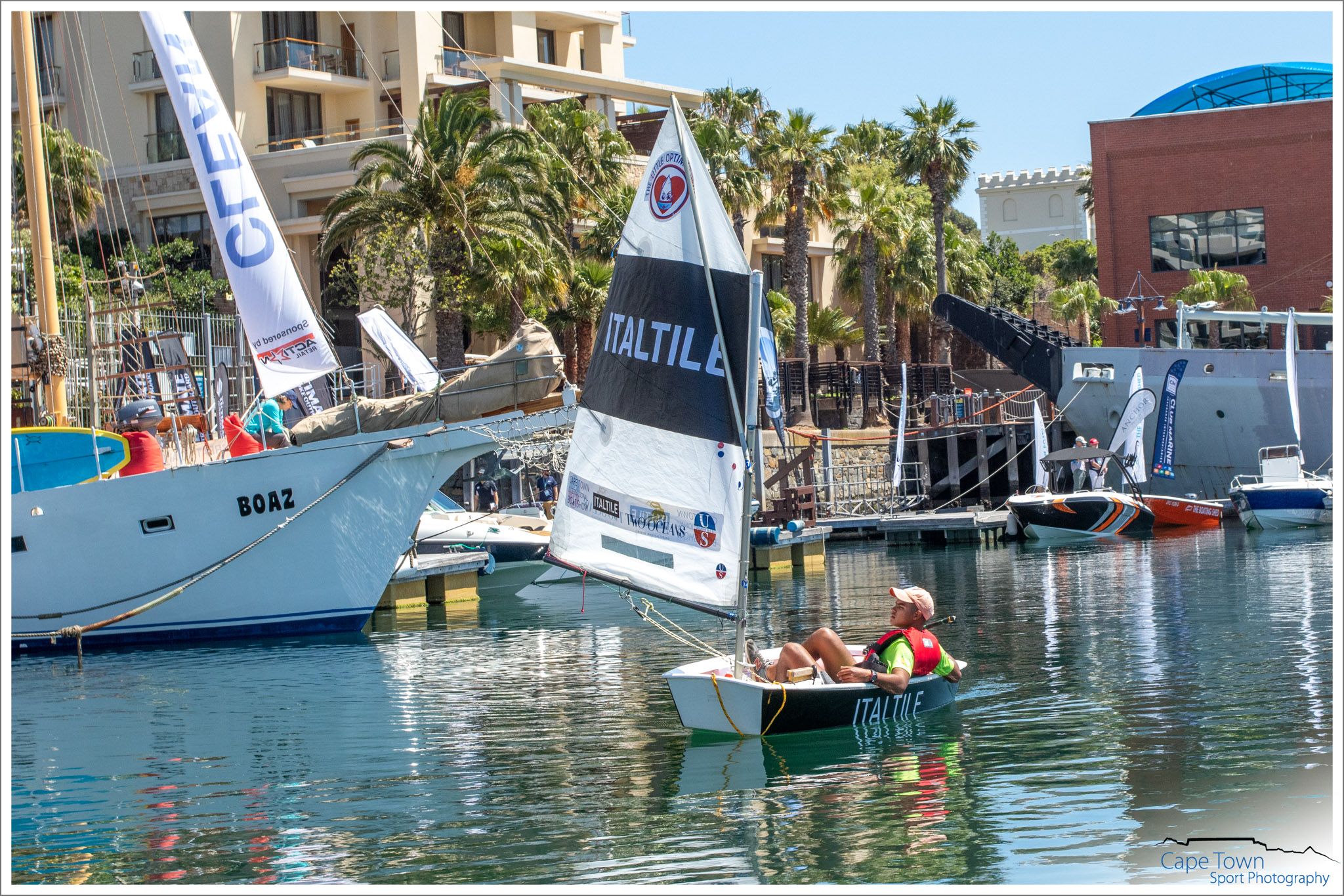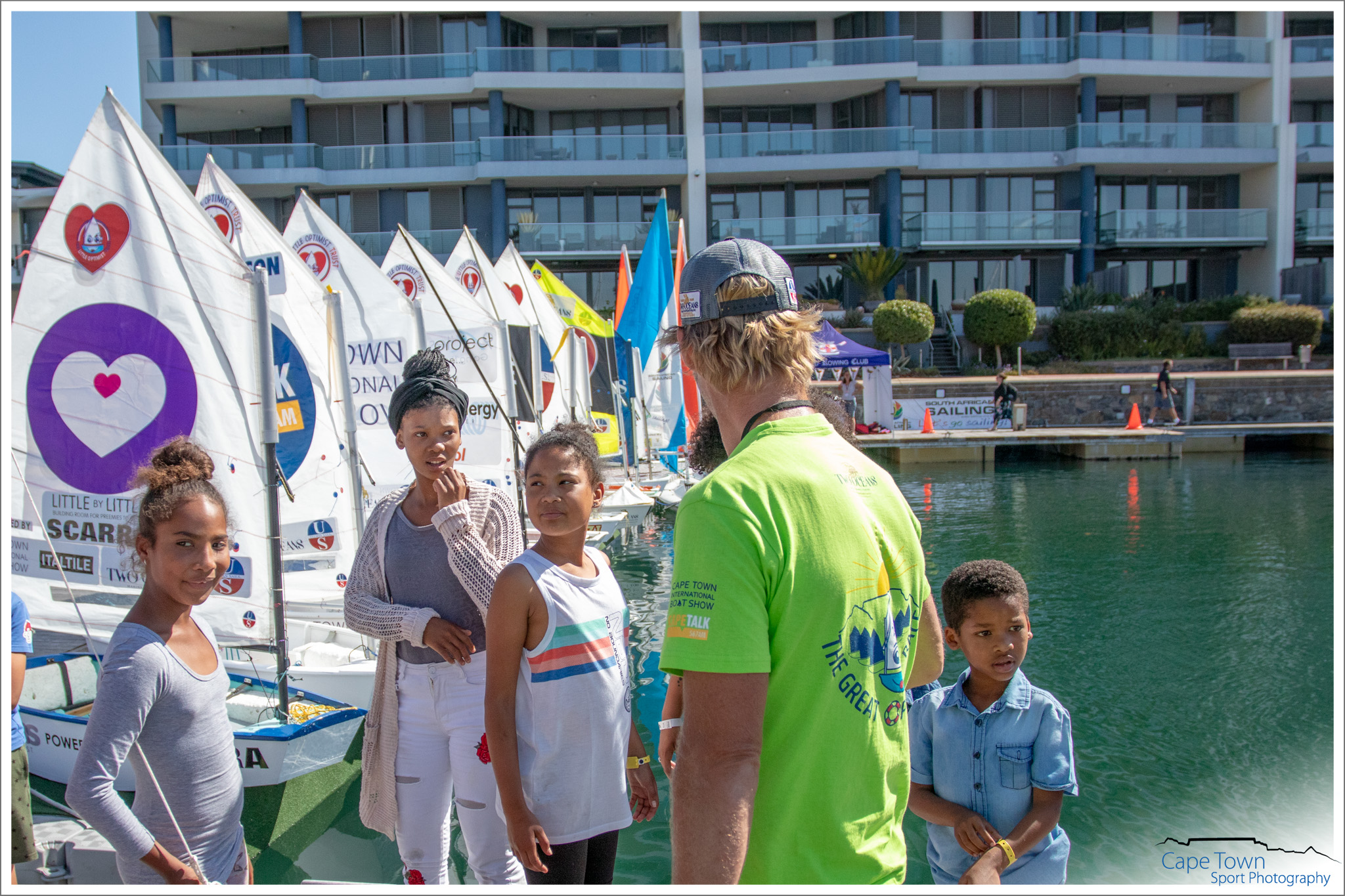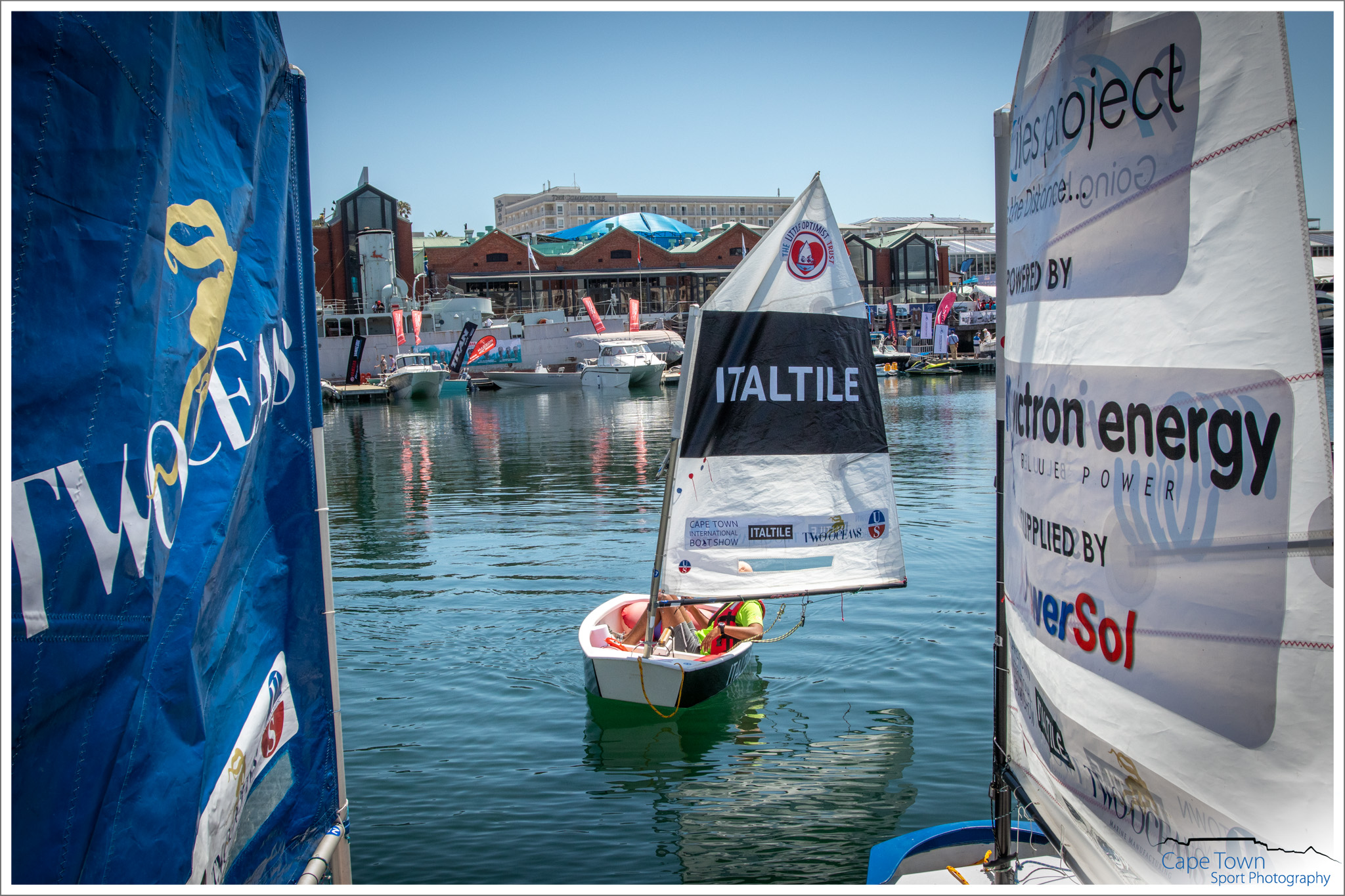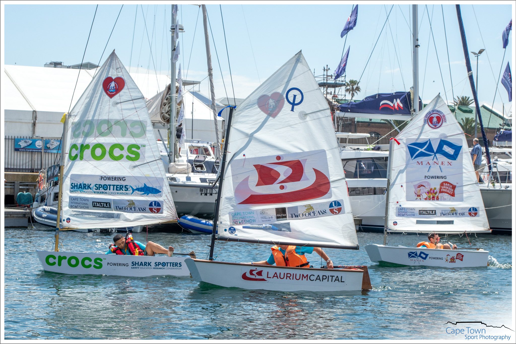 First to sink – Ian Klopper of NSRi in the web tickets Optimist. Jumping the start award – Arno Carstens ( Rock Star). Most committed to the cause and in 3 rd Place – Maryke Musson of the 2 Oceans Aquarium. What a race and what a day! During the 3 days – the Little Optimist Trust hosted sailing experiences and academy’s for kids in less fortunate circumstances. Reach for a Dream kids and their parents got to experience sailing, a captain courage ceremony, the 2 oceans aquarium and lunch at a restaurant. Law hill academy kids and 9 mile project kids were also treated to a day at the boat show, which included all of the above. Fun was had, passion was found, skills were taught and dreams were made real! And that’s what it’s all about. All Optimists will be used in the new Little Optimist Sailing Academy being set up to teach sick and needy kids how to sail.