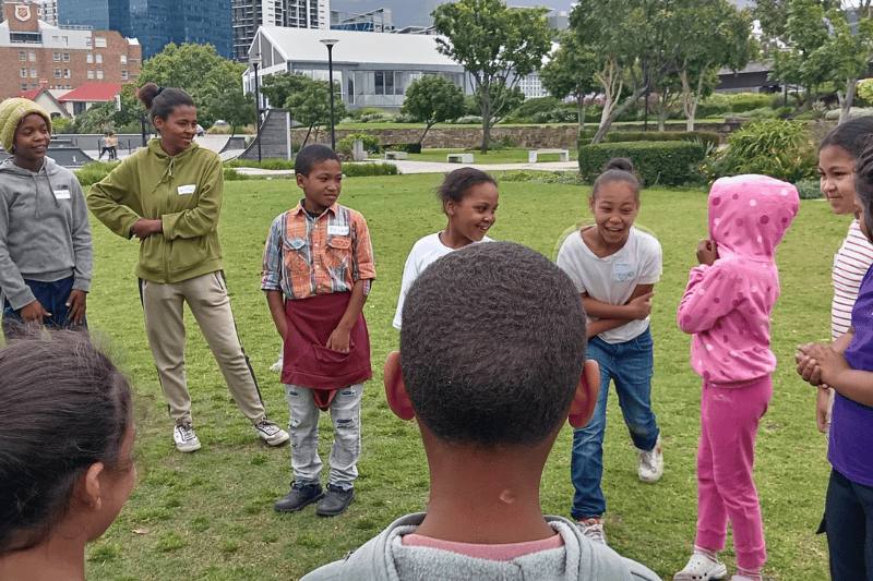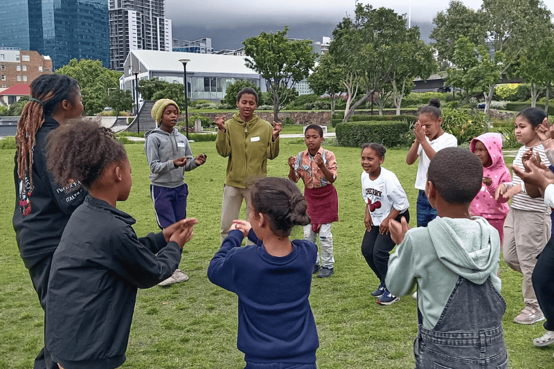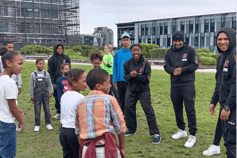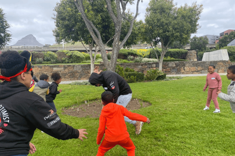 On day 3, we were visited by a few important guests from The Little Lions, an organization that works to improve the mental health of children in impoverished areas. With them, came a sip and paint picnic where the kids got to indulge in a variety of different coloured cooldrinks, based on their emotions, while painting their feelings in Battery Park above the academy. Because kids are always hungry, they recieved many goodies to enjoy as well, both to feed their growing minds, but also uplift their spirits.