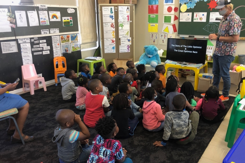 The kids all learned about following their hearts and their dreams. They watched The little Optimist cartoon and met all the characters. They learned that little people can do huge things and that we are all different and special no matter our shape, size, colour or background.