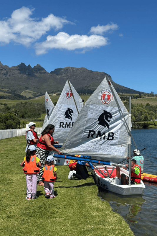 The sun was scorching hot at Webersburg Wine Estate in Stellenbosch, but that didn’t stop the little sailors from hopping into our dinghies for some fun on the water. The Little Optimist Sailing Academy brought the sails, the splashes, and all the good vibes!