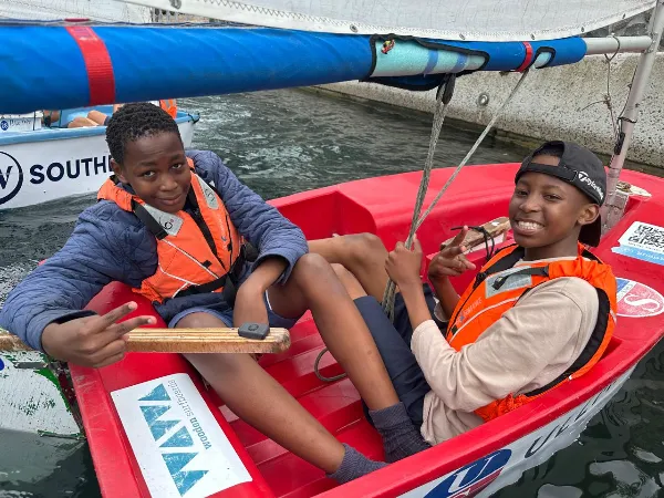 Creativity showed up in full force. The boys and girls were split into three groups, each challenged to build a boat using recycled materials, and wow! They did not hold back. We’re talking proper builds: rudders, center boards, mainsheets… and everything you’d expect on a real boat. And the names? Next level. Some teams even came up with sponsors for their boats. How cool is that?