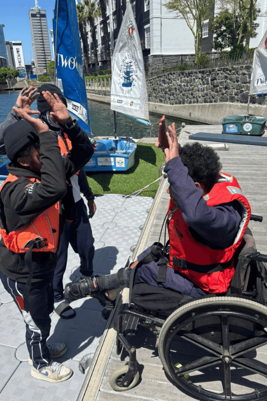 As the children arrived, you could see the mix of emotions β some nervous, others bursting with excitement! The atmosphere quickly filled with smiles as they explored the boats and met their sailing buddies. One of the sweetest moments was watching a learner in a wheelchair determined to get into the boat all on his own β and he did it! That spark of independence set the tone for the rest of the program.